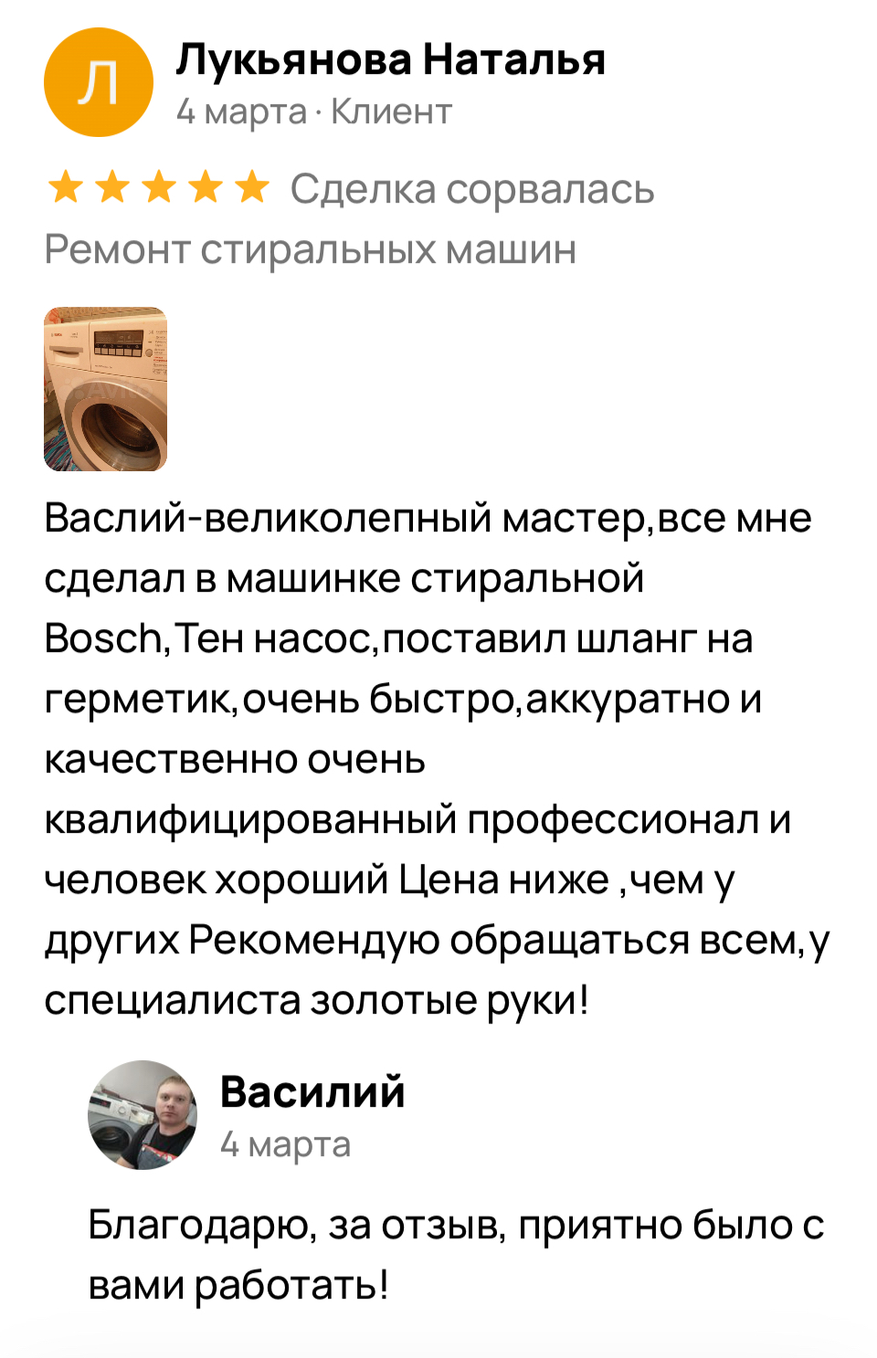 Меня зовут Василий, я мастер по ремонту.